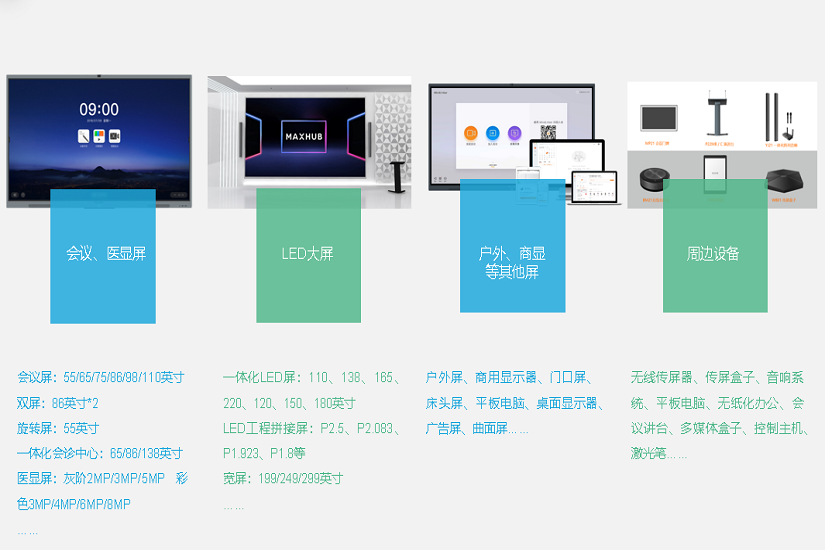 提供各种尺寸的智能会议屏、医显屏、LED屏、商显屏等智能可视产品和无线传屏器、传屏盒子、音响、多媒体联播系统等全面的智能可视产品服务